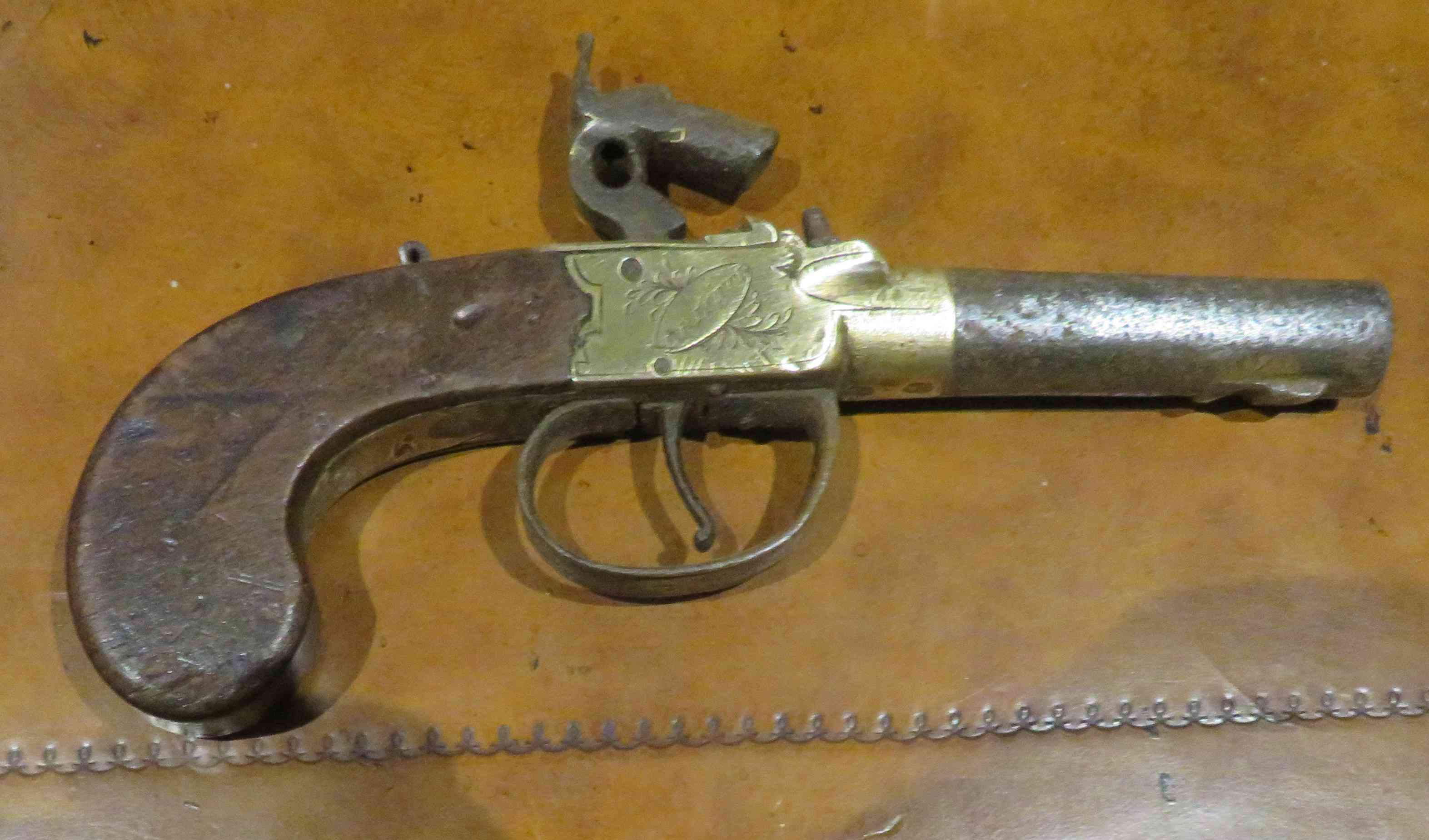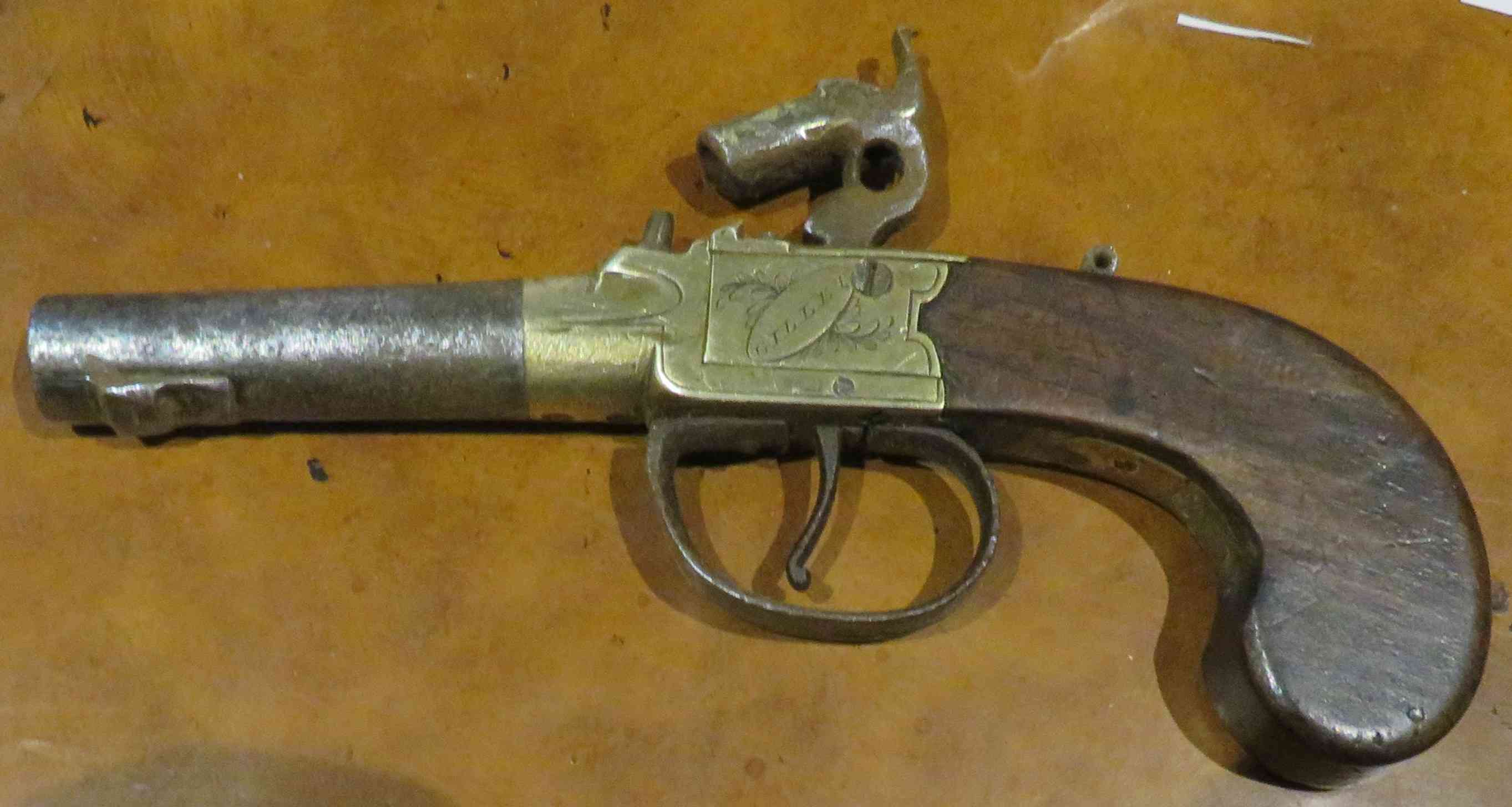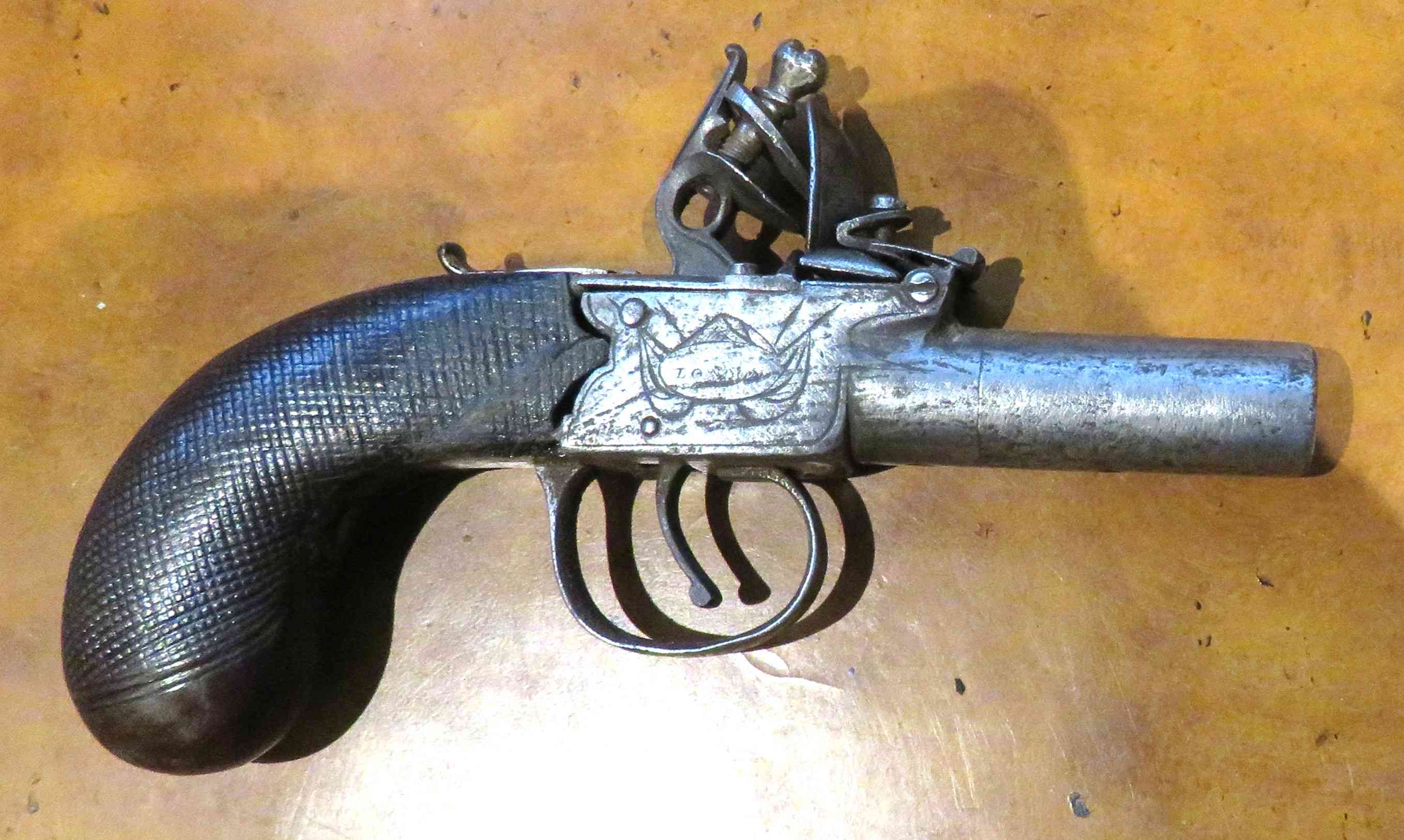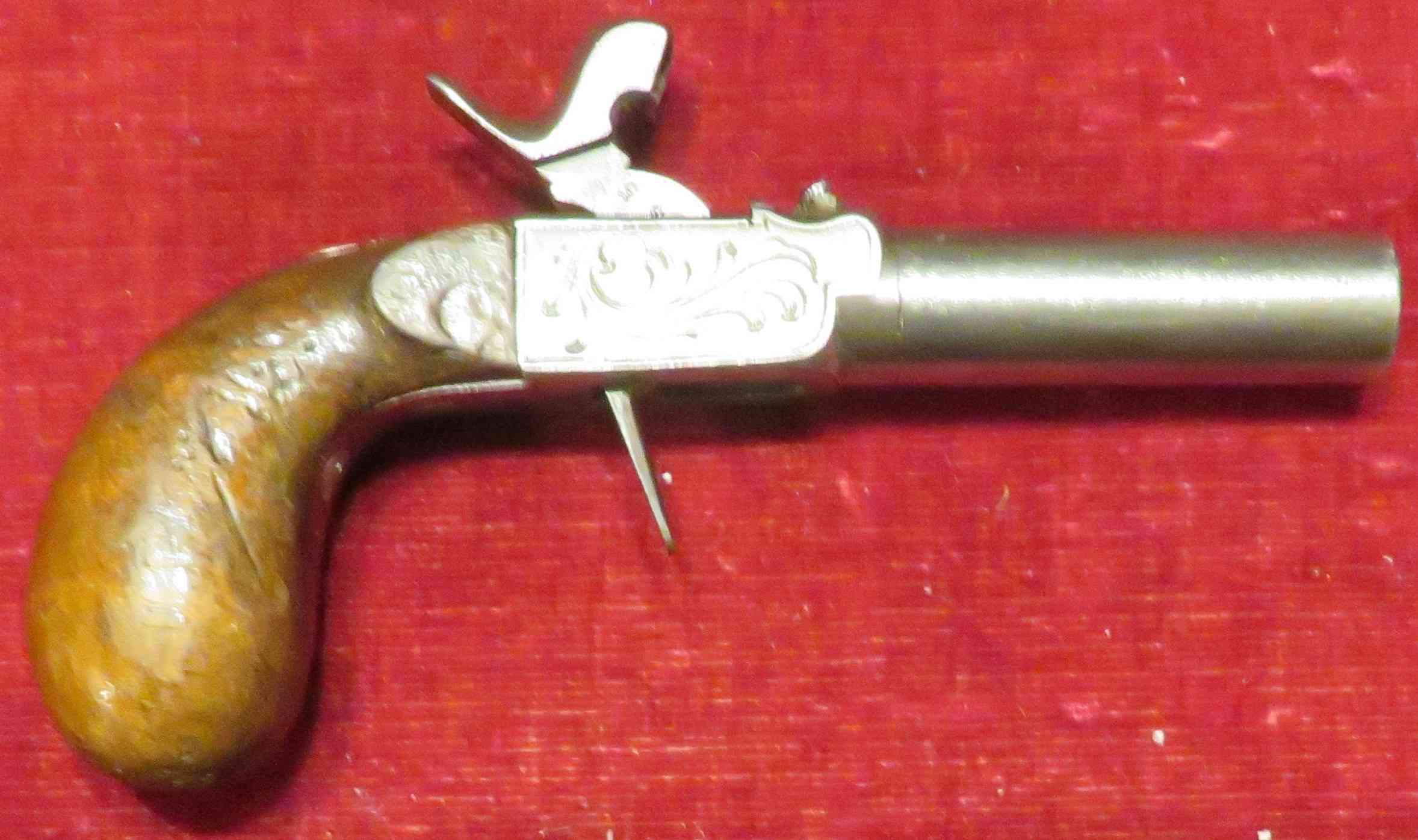 * An English Pocket Style Box Lock Percussion Pistol of an obsolete caliber so no license required to own this pistol.